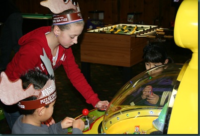 We celebrated Mikes bday night at the MooseJaw! We had the entire basement to ourselves and ordered wings and pizza and pop and played games around the bigscreen. It was really fun! We went home and had cake and opened his presents!!!
